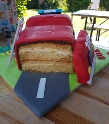 Der kleine Luis feierte seinen 2. Geburtstag und liebt Feuerwehrautos. Da stand natürlich sofort fest, welche Torte wir zu seinem Geburtstag mitbringen. Das Highligt war natürlich das Blaulicht mit Sound. Die Torte kam nicht nur bei dem kleinen Luis gut an, sondern auch bei den Gästen. Da es ein schöner warmer Mai Tag war, habe ich mich für eine fruchtig, leichte Pfirsich-Mascarpone-Quark-Creme entschieden.